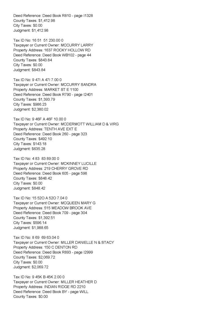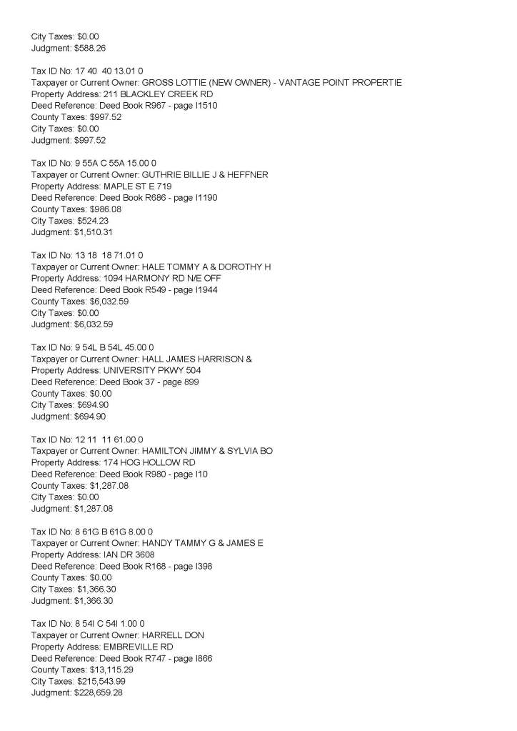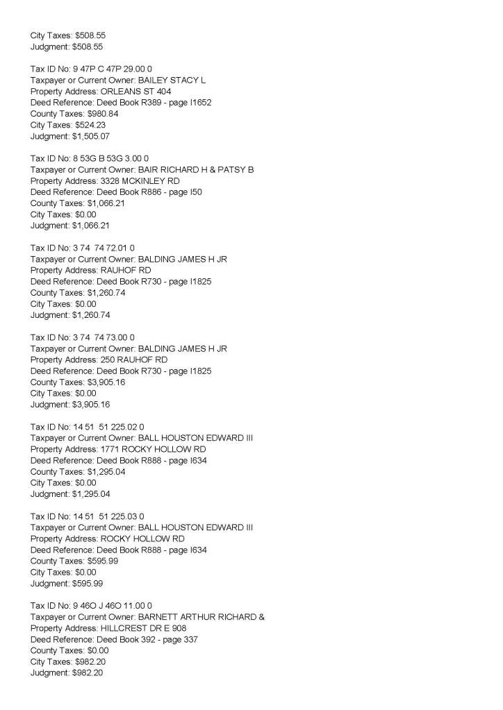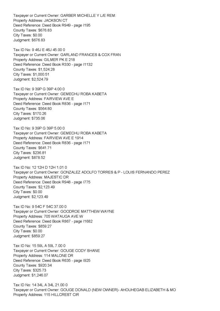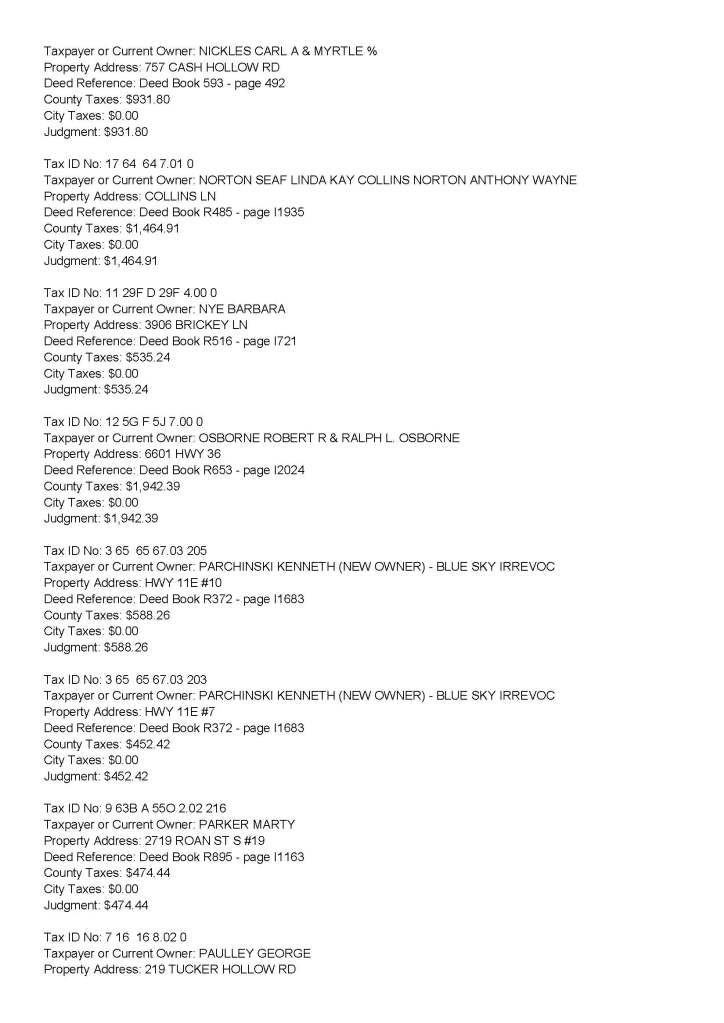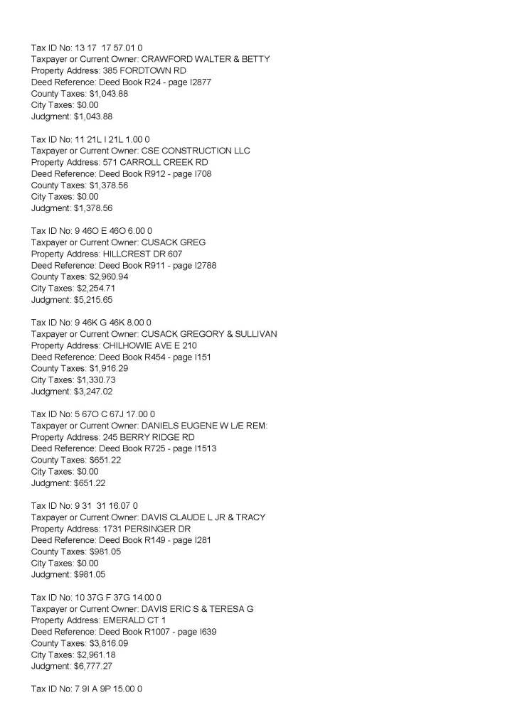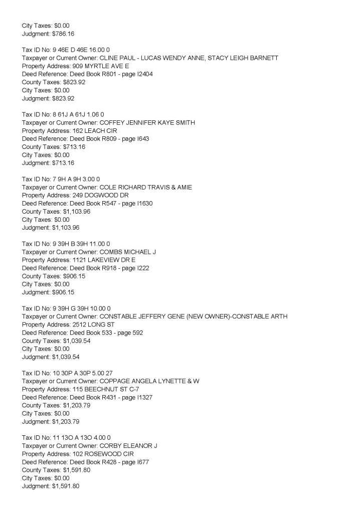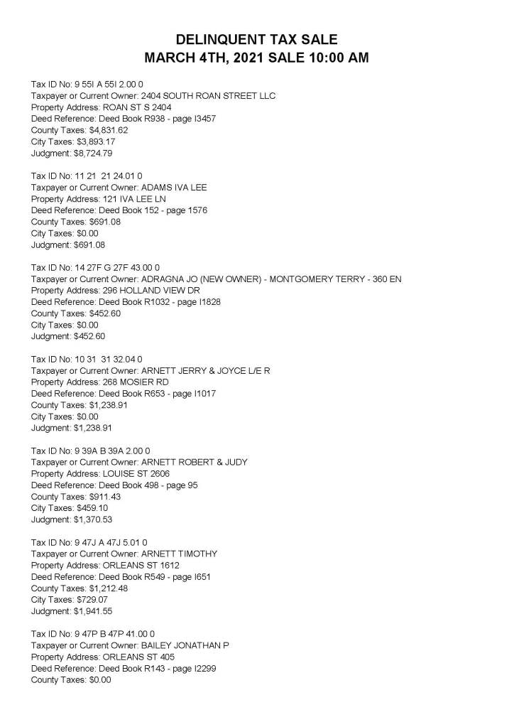 The amounts below are not the opening bid amounts. They are subject to change and the addition of penalties, fees, and interest. The final opening bid amounts will be available on March 1, 2021.